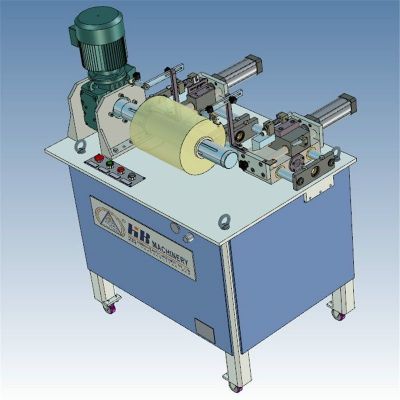 本機主要用于切除PE或PVC保鮮膜產品不平的端面,由于排氣后的膜卷兩端面有微小的錯層、參差不齊,此機使之端面平齊、美觀。